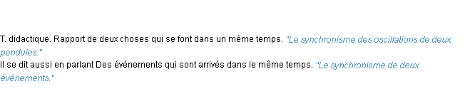 Ancienne signification éditée en 1798 pour le terme « synchronisme » par l’Académie Française.
