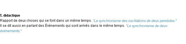 Synonymes les plus fréquemment utilisés pour le terme « synchronisme ».