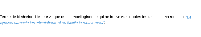Définition de « synovie » de source académique (Académie Française, parution de 1932).