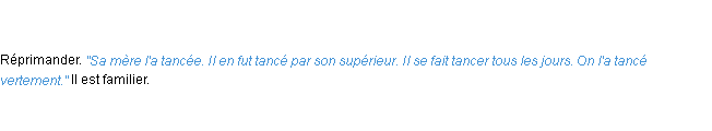 Ancienne définition académique pour le terme « tancer » (parue en 1798).