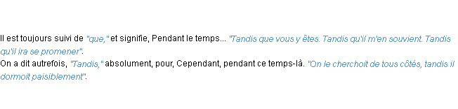 Ancienne signification du terme « tandis », parution de 1798, dictionnaire académique Français.