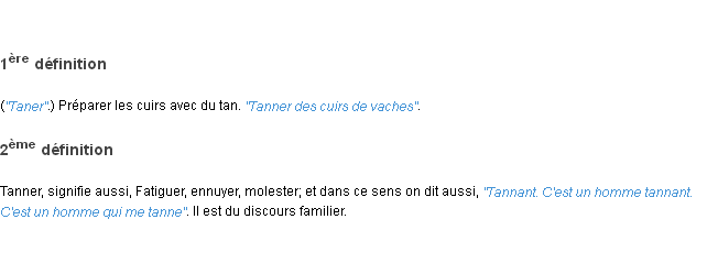 Signification éditée en 2010 par l’équipe de la-definition.fr.Merci à Olivie et Benoit pour la numérisation du mot tanner.