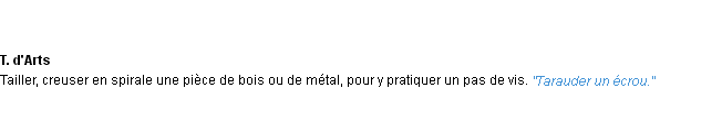 Définition de l’équipe de la-definition.fr (édition de 2009) pour le mot « tarauder ».- Autres Recherches