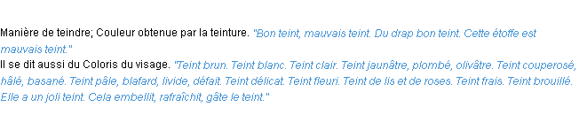 Signification parue en 2009 (source la-definition.fr).Merci à Hervé et Christelle pour la numérisation du mot teint.