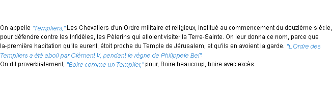 Signification du terme « templier », parution de 1932, dictionnaire académique Français.