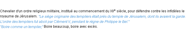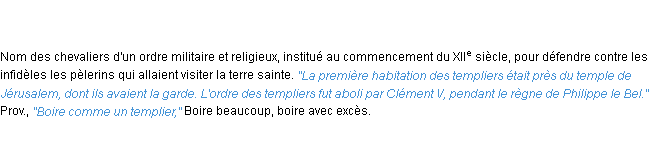 Ancienne signification éditée en 1798 pour le terme « templier » par l’Académie Française.