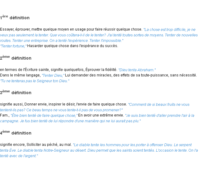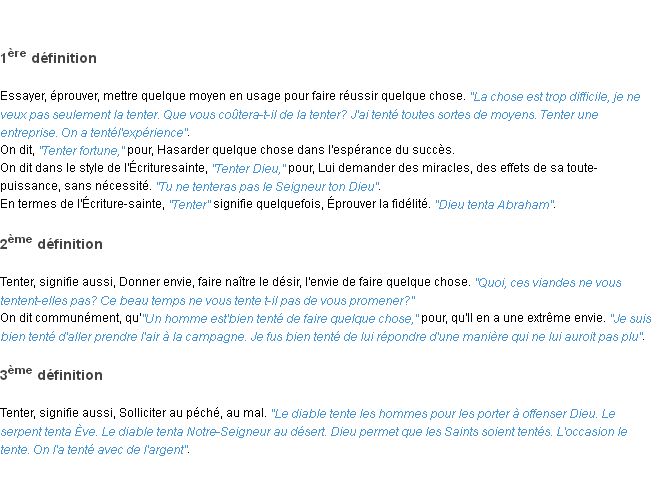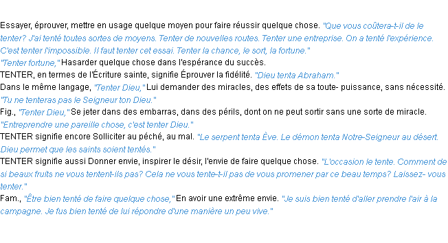Ancienne définition du mot « tenter » par l’Académie Française (édition de 1835).