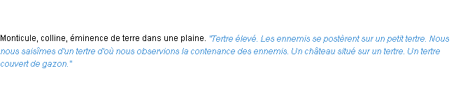 Définition de l’équipe de la-definition.fr (édition de 2009) pour le mot « tertre ».Merci à Ghislain et Doriane pour la numérisation du mot tertre.