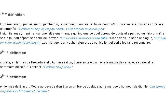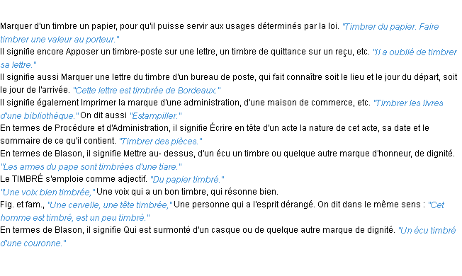 Ancienne définition académique pour le terme « timbrer » (parue en 1798).