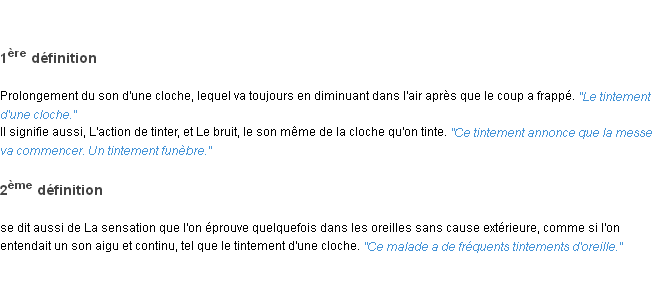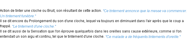 Ancienne définition de l’Académie Française (édition de 1835) pour le mot « tintement ».