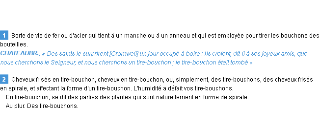 Définition de « tire-bouchon » de source académique (Académie Française, parution de 1932).