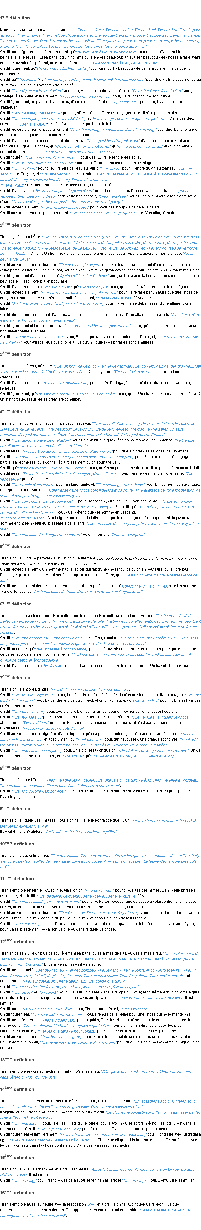Ancienne définition de « tirer » de source académique (Académie Française, parution de 17962).Merci à édith et Christophe pour la numérisation du mot tirer.