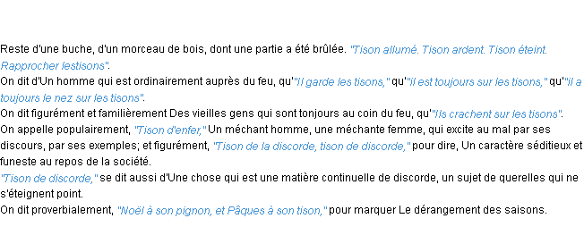 Signification du terme « tison », parution de 1932, dictionnaire académique Français.