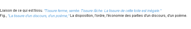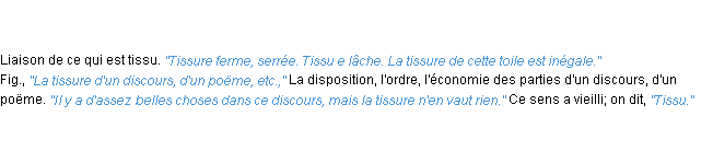 Définition du mot « tissure » par l’Académie Française (édition de 1932).
