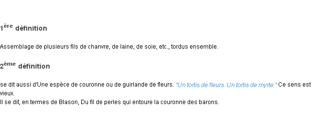 Définition du mot « tortis » par l’équipe de la-definition.fr (édition de 2011).Merci à Célestin et Lunete pour la numérisation du mot tortis.