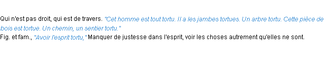 Définition de l’Académie Française (édition de 1932) pour le mot « tortu ».