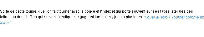 Ancienne définition « toton » du dictionnaire académique Français, parution de l’année 1835.