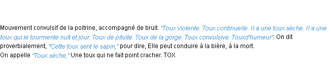 Signification éditée en 1932 pour le terme « toux » par l’Académie Française.