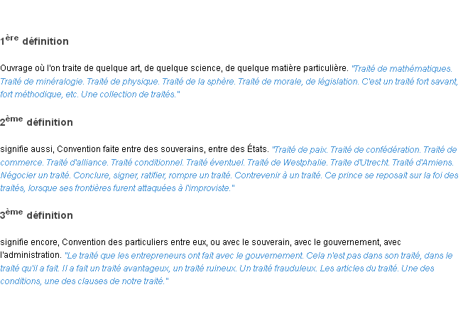 Ancienne définition de l’Académie Française (édition de 1798) pour le mot « traite ».