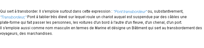 Définition de « transbordeur » de source académique (Académie Française, parution de 1932).