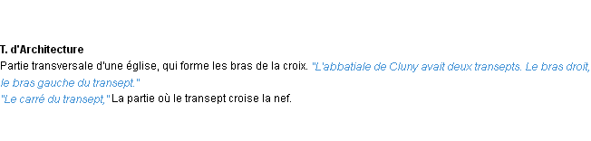 Définition académique pour le terme « transept » (parue en 1932).