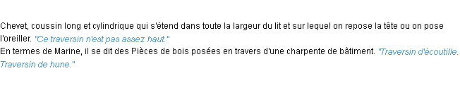 Signification éditée en 1932 pour le terme « traversin » par l’Académie Française.