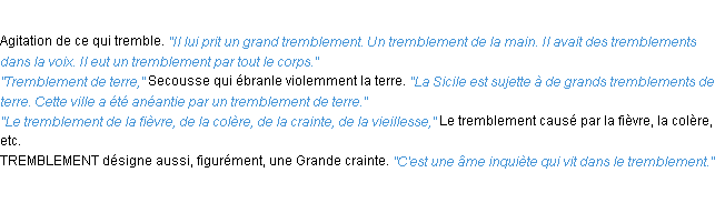 Définition « tremblement » du dictionnaire académique Français, parution de l’année 1932.