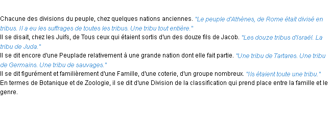 Définition du mot « tribu » par l’équipe de la-definition.fr (édition de 2011).Merci à émilien et Perrine pour la numérisation du mot tribu.
