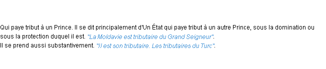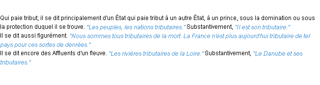 Ancienne définition académique pour le terme « tributaire » (parue en 1835).