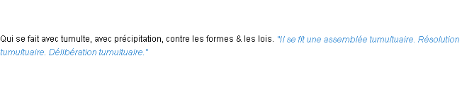 Signification éditée en 1932 pour le terme « tumultuaire » par l’Académie Française.