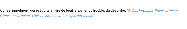 Définition du mot « turbulent » par l’équipe de la-definition.fr (édition de 2011).Merci à élise et Colette pour la numérisation du mot turbulent.