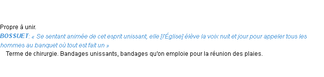 Définition de « unissant » issue du Littré (Auteur Emile Littré, édité en 1876).