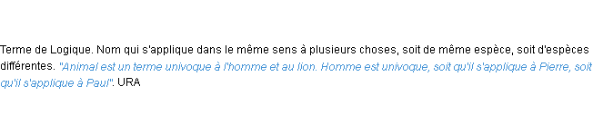 Ancienne définition académique pour le terme « univoque » (parue en 1798).