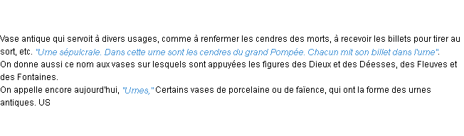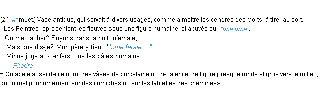 Ancienne définition « urne » du dictionnaire académique Français, parution de l’année 1798.