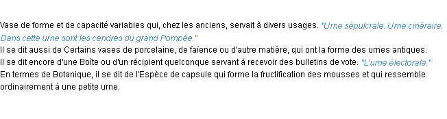 Signification du terme « urne », parution de 1932, dictionnaire académique Français.