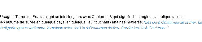 Ancienne définition académique pour le terme « us » (parue en 1798).
