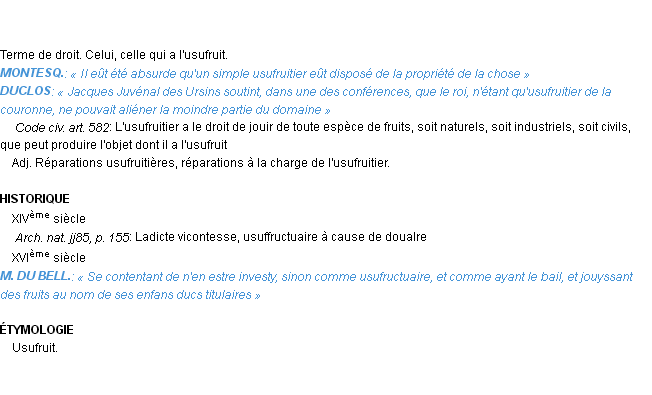 Définition académique pour le terme « usufruitier » (parue en 1932).