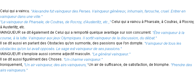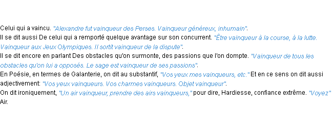 Ancienne définition académique pour le terme « vainqueur » (parue en 1835).
