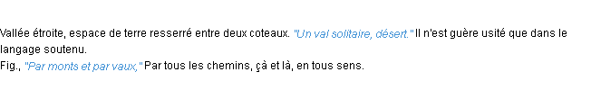 Ancienne signification du terme « val », parution de 1835, dictionnaire académique Français.