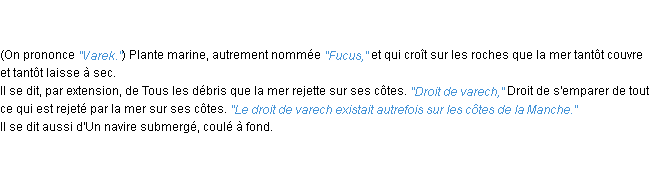 Ancienne définition de « varech » de source académique (Académie Française, parution de 1835).
