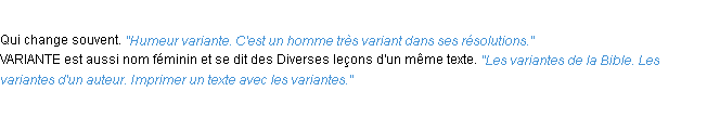 Ancienne signification du terme « variant », parution de 1798, dictionnaire académique Français.