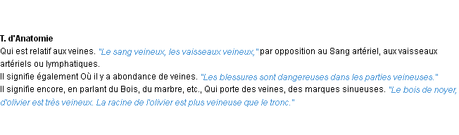 Ancienne définition de « veineux » de source académique (Académie Française, parution de 1798).