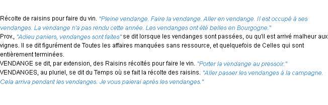 Définition de l’Académie Française (édition de 1932) pour le mot « vendange ».