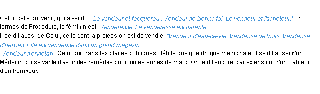 Définition académique pour le terme « vendeur » (parue en 1932).