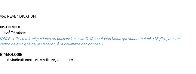 Ancienne signification éditée en 1835 pour le terme « vendication » par l’Académie Française.