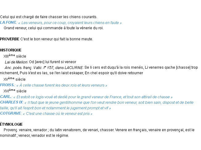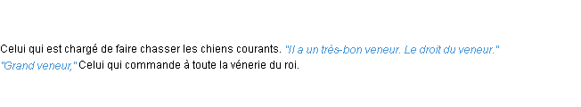 Ancienne signification éditée en 1798 pour le terme « veneur » par l’Académie Française.