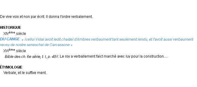 Définition du mot « verbalement » par Emile Littré (édition de 1876).