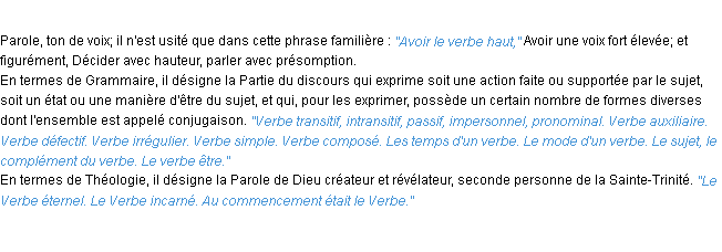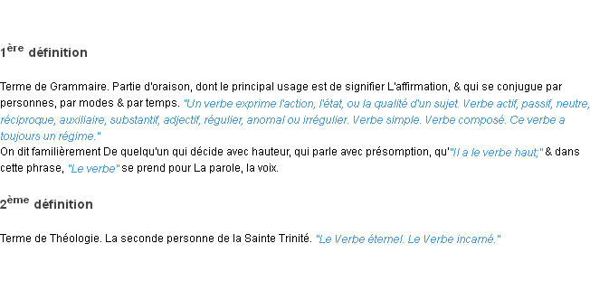 Ancienne signification éditée en 1835 pour le terme « verbe » par l’Académie Française.