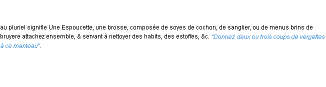Ancienne définition de « vergettes » de source académique (Académie Française, parution de 17962).