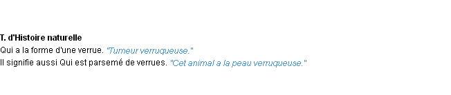 Signification du terme « verruqueux », parution de 1932, dictionnaire académique Français.